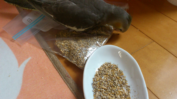 ズプリームはとあるヒナオカメちゃんのブログで粉状にして他のペレットに振りかけると良い香りがして食欲増進になると紹介されていたのを真似しています。