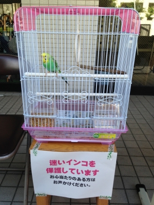 黄緑セキセイインコが保護されてるようです。