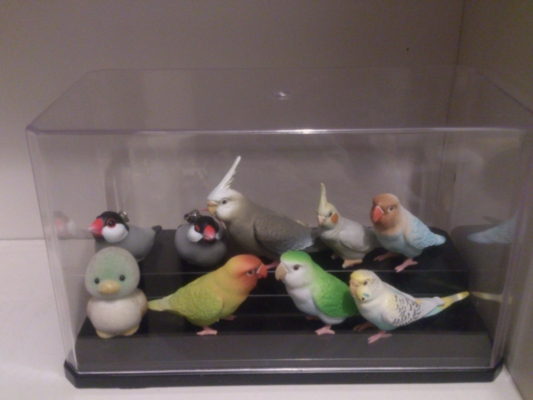 ガチャでゲットした鳥さんたちにホコリがつかないように飾ったんですね(^o^)