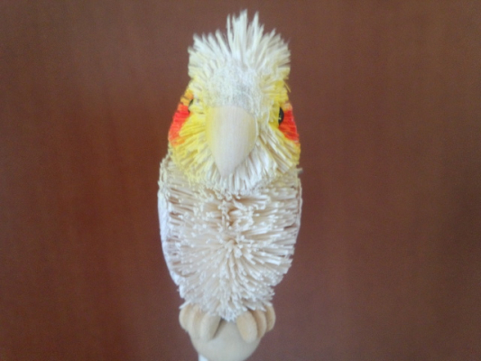 鳥かごの可愛いオカメ達を上手く写真におさめる事が出来無く、でもこのオカメの可愛いらしさを見てもらいたいと思いまして…参考になればと写真up(ブローチ)致しました。