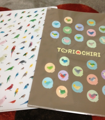 写真1:私もこのクリエーターさんのクリアファイル買いましたよ。最初沢山の鳥達のクリアファイルだけ買おうと思ったのですが、モフチリのイラストが可愛くて二枚購入してしまった。