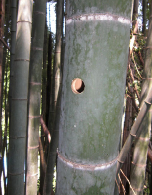 29mmホールソー 立竹に穴を開けてみました。 100均植木鉢に穴を開けてみました。