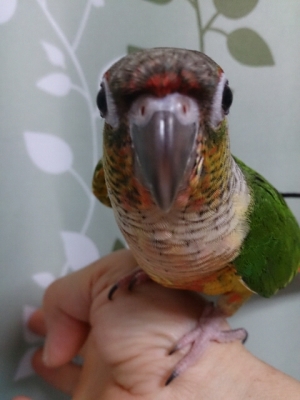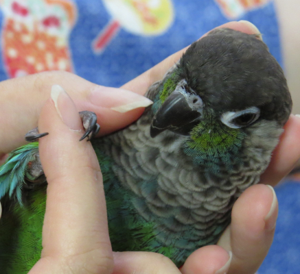 先日、ホオミドリアカオウロコインコ(ブルー)5ヶ月の仔をお迎えしました。