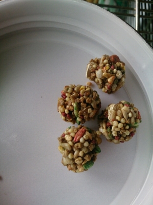 私は以前、まるでおつまみの様なピーナツの鳥のおやつ(丸くてごまが降ってありました)をクッキーに拒否され、もったいないので食べてみたら、塩加減もちょうどよくおいしい調子に乗って何粒か食べちゃいましたよー