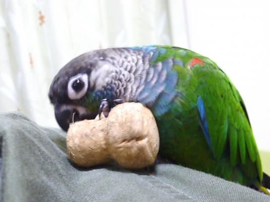 先日、ホオミドリアカオウロコインコ(ブルー)5ヶ月の仔をお迎えしました。