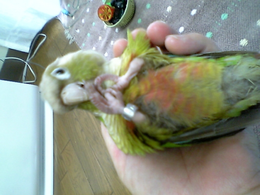 先週温羅が寒さでお腹を壊し、病院で注射をされ、お薬をもらいましたが、もうその日の夜には元気いっぱい、飼い主をガブガブ…。人もインコも若いっていいなと羨ましい限りです。