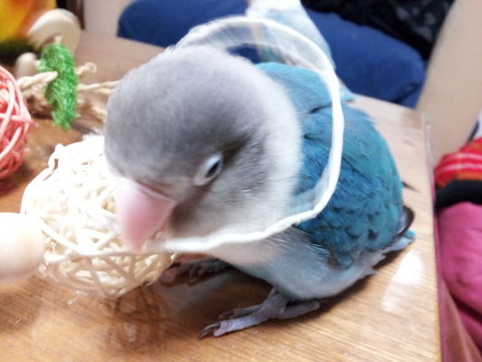 ボタンインコの気の強さ、嘴の強さには参ります。。