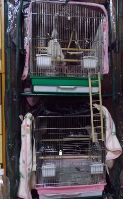 ケージはホーエイの465です。ホームセンターとネットで鑑賞用の花に使う簡易ビニールハウスを利用しています。