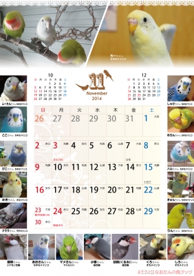以前、ここで募集していた「2014年 壁掛け 鳥づくしカレンダ」が