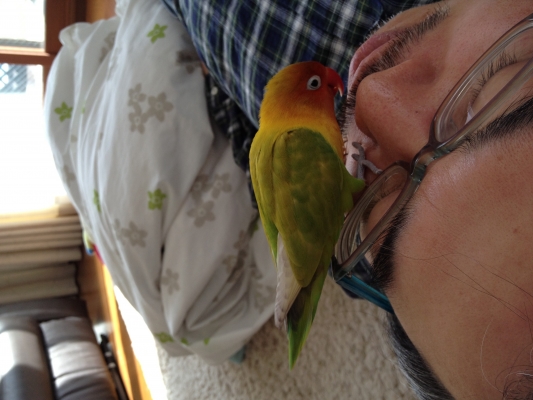 11月6日に川崎市宮前区から飛んで行ってしまいました。ヤマブキボタンインコ、二歳、名前はにこちょ。情報よろしくお願いします。m(__)m 人にじゃれるのが好きです。
