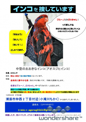 【沖縄】アオスジヒインコのブルーノ見つかりました!
