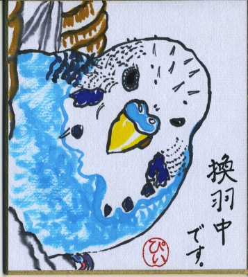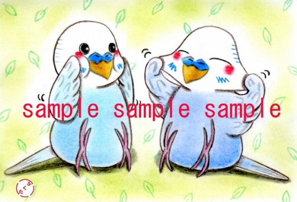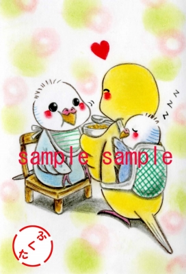 イラストレーター、ふくたさんのセキセイインコのポストカード&絵手紙作家、ぴぃまるさんの色紙&ポストカード