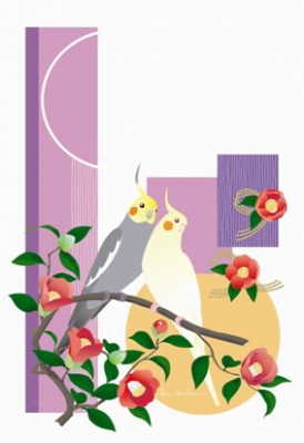 あトリえ ポストカード セキセイインコ、オカメインコ、モモイロインコ、ラブバード