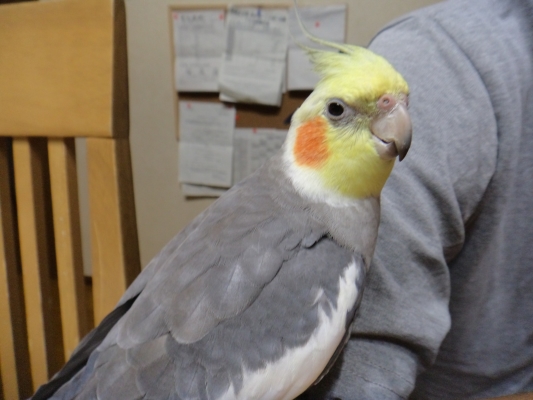 体色:グレー 頭は黄色 ほっぺがオレンジ