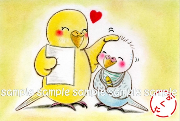 可愛いセキセイインコのポストカード&ステッカー