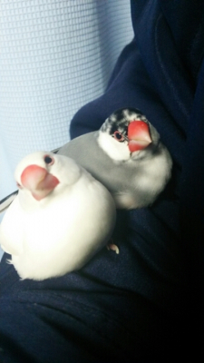 人間が何人いても、絶対桜文さんと白文さんで今日のお気に入りの人をとりあいますが・・・(基本白文さんが桜文さんを追いかけ回す)