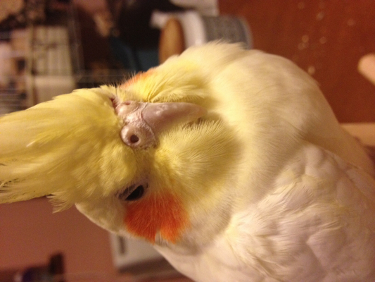 2013.11.14に、大田区西六郷でオカメインコのルチノー(メス)を逃がしてしまったので