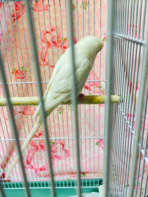 世田谷区祖師谷商店街のTUTAYA付近にて、真っ白なセキセイインコ(アルビノ)・オスの子が保護されました。