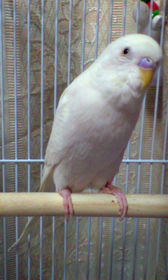 【インコの特徴】:蝋膜が薄紫っぽくツルンとしている、オス。