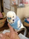 名前はピピちゃん オス 全体は青、頭部は白 胸に白の模様があります。