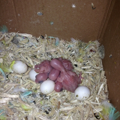 我が家もジャンボセキセイ夫婦が卵を床産みした為、その時点で大きなダンボールを入れたところ、初産で8個中、5羽が孵り育て上げました^ ^