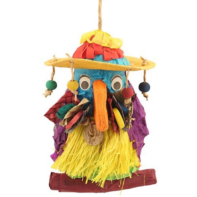 定番の鳥さん型ピニャータに、かじって楽しい帽子や衣装が付いてますます楽しく。