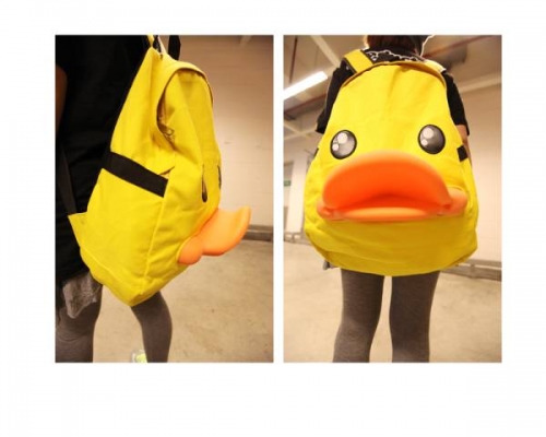 アヒルのリュックすごいですね!インパクト大で可愛いです。外で使うにはちょっと勇気が要りそうですね・・・(^_^