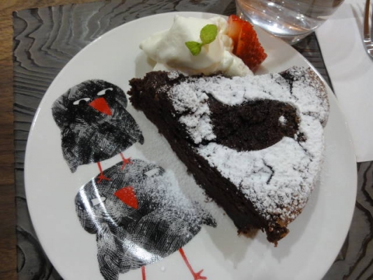 可愛い鳥さん柄の、お皿に乗って、チョコケーキは、登場しましたー^^
