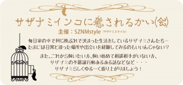 SZNMstyle主催の天然癒し系サザナミインコに癒される会です。