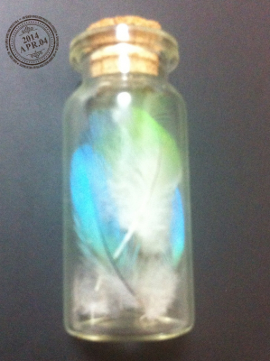 この画像の右から2番目の瓶に入っている、ふわふわの淡い色の羽すごく綺麗です!お菓子みたいで美味しそうです。(*^_^*)