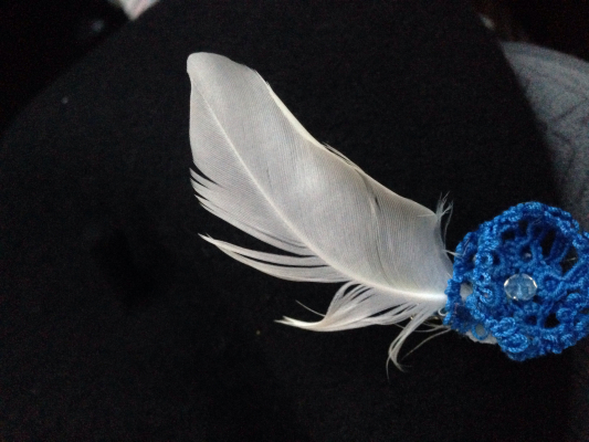 ルビーちゃんの羽で作ってもらったヘットドレス、素敵ですねー