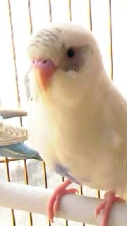 白のハルクインで頭と顔と羽根に少し黒模様