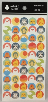 イラスト工房Emiさんのがま口ポーチ&ストラップ、ぴぃまるさんの絵手紙ポストカード、KOTORITACHIのシール、Shinzi Katohデザインのオカメインコのピルケース、セキセイインコのマスキングテープ。
