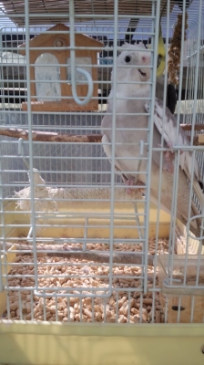 基本放し飼いの我が家、さすがに私には慣れてくれたようで噛みつくことはなくなりましたが、籠の外に出てこようとしません。食事はケージの外でさせているので、おなかが空くと外を窺うのですが、迎えに行くまで決して出てきません。