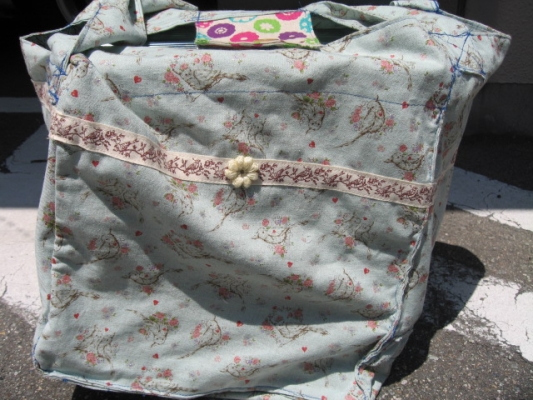 仲が悪いので(セキセイちゃんのオカメちゃんへの片思いです。メス同志ですが―――)オカメちゃんは動物病院やお嫁入りしたバードショップに遊びに連れて行く用にハートフルキャリーを買ったのでそれに入れてセキセイちゃんはひなの時にバードショップで買ったプラ箱に入れて我が家の真後ろにある市の公園に連れて行って思い切り日向ぼこっこさせています。2羽共に空を見上げてきらりんおめめで見ていますよー(^−^)写真は私のお手製のきゃり―ケースバッグです。