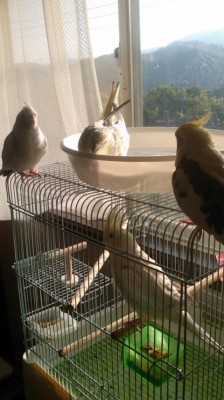 それと、我が家の鳥たちは、日向ぼっこ、あまり好きではありません(笑)