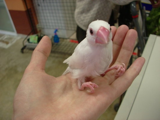 実はこの子を飼う10日程前にも、このお店で白文鳥の雛を買いまして(挿し餌はよく食べていたように思ったのですが、その子の体重がなかなか増えず、そのまま死なせてしまいました…)、
