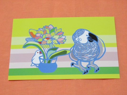 サトウユキエさんの、ことりゴム、ピン、ポストカード