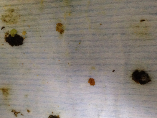 それとですね、先ほどから糞がとても黒々したものが増えています。これ...血糞ですかね?糞の写真、不快でなければ一度見てもらえませんか?(´・_・`)真っ黒です。