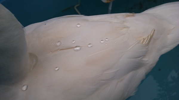水鳥の撥水力は凄いですね、陸鳥は水浴びをしたら濡れネズミ?のようになってしまいますものね(^O^)