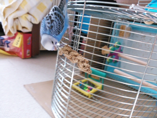 出てきたのがチョコちゃんのようなブルーのセキセイインコでした。最近のおもちゃってとてもよくできていて関心しました。いくつかまとめてまた家のインコグッズ紹介で写真のせたいと思います。