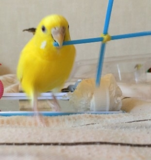ゲージの中でのお気に入りはくり抜いたペットボトルのキャップとストラップで、キャップはくわえてわざわざ上まで運んで落とす!…これを何度と繰り返して遊んでます。