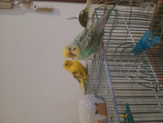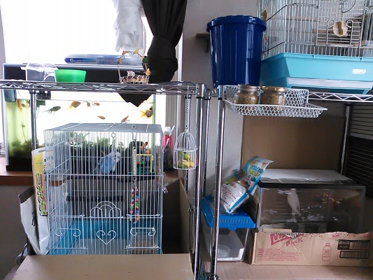 今日試しにチョコのケージにチロルを入れてみました。 最初は落ち着かなそうだったけど、上の止まり木、鏡、ロープ、など色々な所に行って自分の家の用にくつろいでました(笑´∀`)