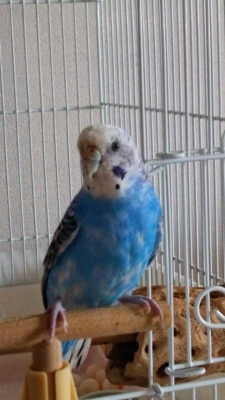 【体毛】顔は白色で体はほぼ青 羽に黒の斑点
