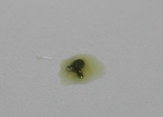 ぬるま湯で濡らした綿棒で拭き取ってあげましたが、毛は硬く固まっており取るのに苦労しました。少し嗅いでみると痰のような嫌な匂いがしました。