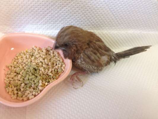 ペレットとシードを半々であげていますが、食事から栄養がとれていなかったら、ここまで頑張れなかったと思います。
