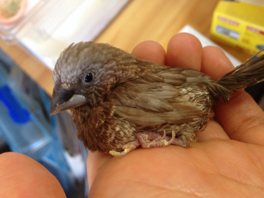 初めての繁殖で、1羽だけかえった子ですが、親が世話をしていない様に見えたため、3日目から私が育てています。