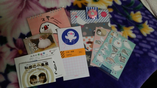 まんがらさん、風邪引かれていたのですね。今はいかがでしょうか?風邪は万病の元、しっかり治して下さいね。『文鳥まつり』素敵でしょっ?でも最近は九州でも(福岡辺り?)鳥イベント広がっているから、このまま鳥ブームが続けばまんがらさんの方での開催も夢じゃないか〜〜も〜〜〜う〜〜ん、どうだろう…。『文鳥まつり』でグッズ購入し楽しんだのですが、その後『おまけ』がありました。Twitterで『文鳥まつり』の戦利品をアップしてたら、購入したグッズの作家さんからありがとうツイートがありました。びっくり!SNSって凄いなぁっと改めて感心しました。後、まんがらさんの『オツマミぶんちょ』可愛い〜〜!!いいなぁ。なされるがままじゃあないですか。うちのあかりはすぐ逃げちゃいますよ。あっまんがらさん、もう正座崩していいですよ。足痺れたでしょうw?