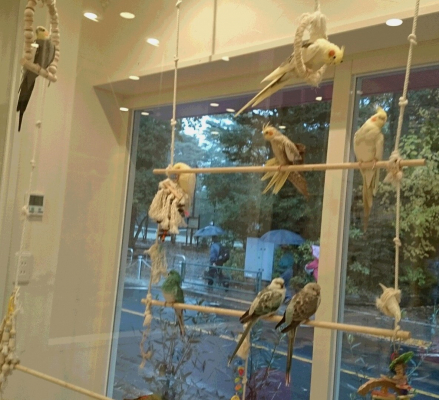 文鳥さんズやインコさんズ達は店内飛びまわれるのですか? ガラス等で仕切られ分け?