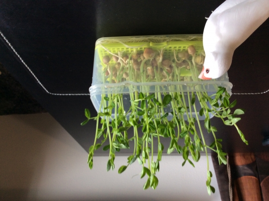 容器は浅いお皿で、蛇口からチョロチョロ流しながら